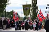 Flaggborgen med Skotterud Skoles fane ledet an det lange 17. mai-toget på Skotterud.