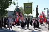 Et langt 17. mai tog beveget seg gjennom Skotterud sentrum med Skotterud skoles fane aller først.