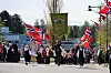 Klokka 08:00: Flaggheising Finsrud samfunnshus. Tog med fane