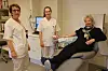 Fagbioingeniør og daglig leder ved blodbanken Ann kristin Arnøy, sykepleier Elise Bårli og blodgiver Brit Taugbøl oppfordrer flere til å gi blod.