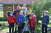 Hroar Gomsrud (t.v.) lærer Eivind Falk, Eira Nordal, Christoffer Utgården, Thor Kristian Gomsrud (bakerst) Martin Brøderud, Thomas Brøderud og Øivind Sørli har vært på spikkekurs på Almenninga i sommerferien.