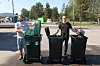 Petter Olsson (t.v.) og Tommy Martinsen hos GIR viser fram eksempler på hvordan den nye avfallsbeholderen kan bli med to separate kamre med et rom for restavfall og et for matavfall.