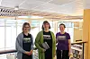 Ieva Juceviciute-Ruse, Randi Heggland Strøm og Ingunn Espeland gleder seg til 20 års feiring av biblioteksbygget.