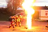 Så eksplosiv kan en kjele med smult som tar fyr bli om man heller vann på for å slukke. Denne gangen var det bare en kontrollert oppvisning.