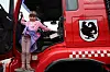 Ebba Olsson (5) fra Matrand synes det var morsomt å "prøvekjøre" brannbilen, men noen brannkonstabel blir hun nok ikke slik det ser ut nå. Hun vil helst jobbe i barnehage når hun blir stor.