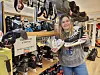 Jenny Marie Fjeld viser frem et par av skøytene som kan lånes hos BUA.