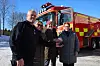 Brannsjef Arnfinn Strømstad er godt fornøyd med å få sin nye tankbil. Her overrekker de tre ordførerne Kamilla Thue (Eidskog), Rune Grenberg (Grue) og Elin Såheim Bjørkli (Kongsvinger) nøklene til den nye bilen.