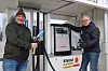 Andreas Repshus (t.v.) og Terje Larsson fra Elstad Oljesenter er fornøyd med å vise frem nyeste drivstoffanlegget i Eidskog.