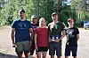 Simen Høgberg Slaastad (t.v.), Kjell Erik Høgberg Slaastad, Anette Storeskar, Knut Andre Holøien og Amund Slaastad Godtlund var noen av eidskogingene som deltok på regionmesterskapet i leirduesti lørdag.