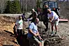 Petter Bentzon (forrest) Erik Staavi , Jan Tore Kraft, Ragnar Dæhli, Lars Rambøl, Trond Rapstad og bakerst i bildet Fredrik Ruud. I traktoren sitter Sigmund Ruud. Disse er noen av de som har deltatt i dugnadene i Brustadvika.