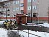 Brann i boligblokk – beboer reddet ut med stige