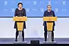 Imdi-direktør Libe Rieber-Mohn (t.v.) og arbeids- og inkluderingsminister Marte Mjøs Persen (Ap) holder pressekonferanse om hvor mange flyktninger kommunene vil bosette i 2023.