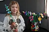 Hermine Haugestad Slartmann (9) elsker å bygge avansert Lego. Her viser hun fram en av sine blomsterdekorasjoner – bygget i Lego.