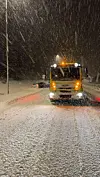 Travle timer for bilbergerne etter snøfallet. Her på E16 i Kongsvinger hvor en bil har kjørt av veien..