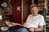 Erik Øverby hjemme i stua med en av mange utklippsbøker som dokumenterer over 45 år i musikkens tjeneste.