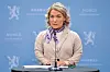 Landbruks- og matminister Sandra Borch (Sp) under pressekonferansen om jordbruksoppgjøret for 2023.