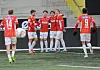 Jubel og seiersglede for Lucas Ravn-Haren (f.v.), Joel Nilsson, Noa Williams, tomålsscorer Jesper Grundt, Andreas Dybevik og kaptein Adem Güven.