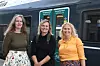 (F.v.) Ann-Kristin Torgersen Aamodt fra Klosser innovasjon, statssekretær Abel Cecilie Knibe Kroglund (Ap) og leder av jerbaneforum Kongsvingerbanen, Kamilla Thue.