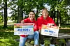 Jorun Stiansen og Tom Stiansen deler ut gevinster til glade vinnere i Postkodelotteriet. Denne gangen ble det to heldige vinnere på Magnor som hver vinner 125.000 kroner.