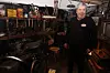 Øyvind Ånerud viser fram en garasje der både motorsykkel og andre effekter er tidsriktige for 1930-tallet.