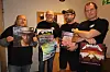 Ruben Nysether (f.v.), Morten Nilsen,Sten Bjørndalen og Tom Høiby arrangører av Magnor Vinylmesse har bestemt seg for en kandidat som vil få årets Vinylpris under Magnor Vinylmesse lørdag ..Bildet er tatt før en tidligere messe og datoen på plakaten som Morten Nilsen holder er derfor misvisende. Årets arrangement er lørdag 21. oktober.