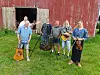 Bandet Gamlelandet har startet sesongen med nabokonsert hos Dagfinn Gressberg på Buholtet. Bak står bassist Lars "Larssa" Gøran Solsen og videre fra venstre Tormod Strid (gitar/vokal), Ole Viggo Møllerbråten (trommer), Einar Larsen (gitar/vokal) og Maren Rambøll Ruud (fiolin/vokal).