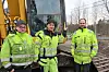 Tre av de som har vært med på å jobbe gjennom natta for å få veien klar.